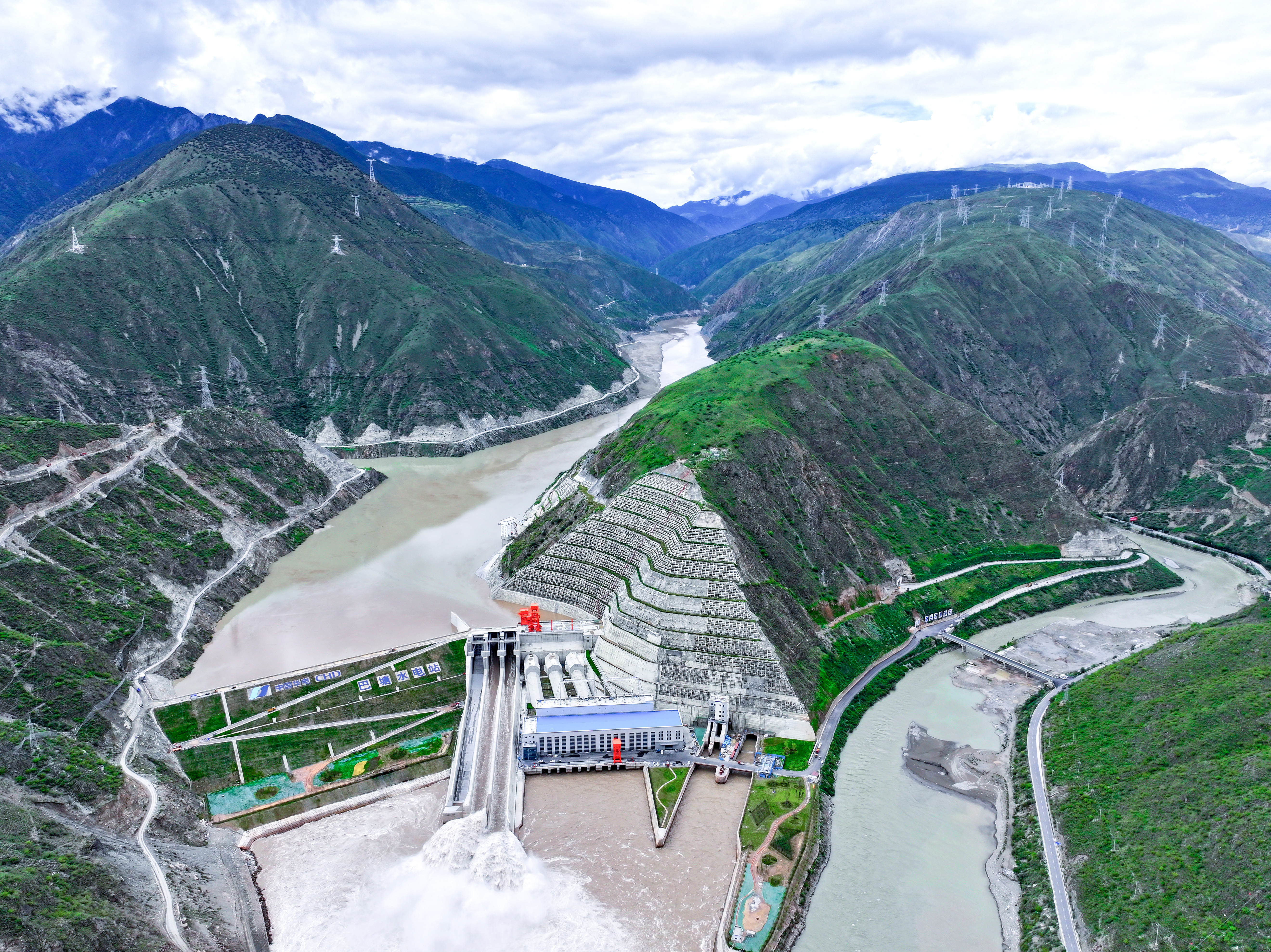 圖為318國道旁的水電明珠——華電金上巴塘水電站。該水電站位于金沙江上游藏川段,2025年7月實現(xiàn)75萬千瓦全容量投產,年均發(fā)電量約34億千瓦時。