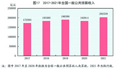 全年全國(guó)一般公共預(yù)算收入202539億元,比上年增長(zhǎng)10.7%,其中稅收收入172731億元,增長(zhǎng)11.9%。全國(guó)一般公共預(yù)算支出246322億元,比上年增長(zhǎng)0.3%。全年新增減稅降費(fèi)約1.1萬億元。(見圖17)