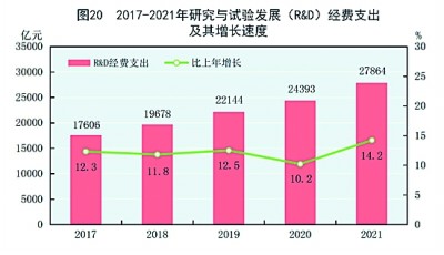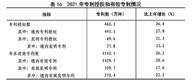 全年研究與試驗(yàn)發(fā)展(R&D)經(jīng)費(fèi)支出27864億元,比上年增長(zhǎng)14.2%,與國(guó)內(nèi)生產(chǎn)總值之比為2.44%,其中基礎(chǔ)研究經(jīng)費(fèi)1696億元。國(guó)家自然科學(xué)基金共資助4.87萬個(gè)項(xiàng)目。截至年末,正在運(yùn)行的國(guó)家重點(diǎn)實(shí)驗(yàn)室533個(gè),納入新序列管理的國(guó)家工程研究中心191個(gè),國(guó)家企業(yè)技術(shù)中心1636家,大眾創(chuàng)業(yè)萬眾創(chuàng)新示范基地212家。國(guó)家科技成果轉(zhuǎn)化引導(dǎo)基金累計(jì)設(shè)立36支子基金,資金總規(guī)模624億元。國(guó)家級(jí)科技企業(yè)孵化器[60]1287家,國(guó)家備案眾創(chuàng)空間[61]2551家。全年授予專利權(quán)460.1萬件,比上年增長(zhǎng)26.4%;PCT專利申請(qǐng)受理量[62]7.3萬件。截至年末,有效專利1542.1萬件,其中境內(nèi)有效發(fā)明專利270.4萬件。每萬人口高價(jià)值發(fā)明專利擁有量[63]7.5件。全年商標(biāo)注冊(cè)773.9萬件,比上年增長(zhǎng)34.3%。全年共簽訂技術(shù)合同67萬項(xiàng),技術(shù)合同成交金額37294億元,比上年增長(zhǎng)32.0%。(見圖20)(見表16)