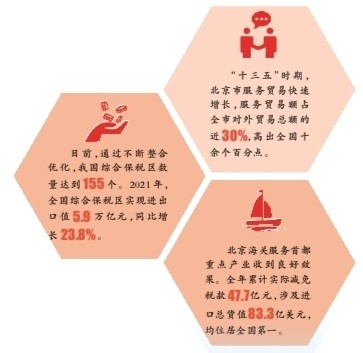 由加工貿(mào)易到醫(yī)藥物流集散、文化保稅展拍、航材保稅維修、保稅電商……北京天竺綜合保稅區(qū)經(jīng)過多年發(fā)展,已成為全國空港型綜合保稅區(qū)改革創(chuàng)新的積極踐行者,為全國提供了一批可復制可推廣的“北京經(jīng)驗”?!皟蓞^(qū)”建設(shè)啟動以來,34項政策全國先行先試,以首善標準打造高水平開放新高地,北京正在以創(chuàng)新的姿態(tài),連接中外,擁抱未來,以海納百川的氣魄,引進國際優(yōu)質(zhì)要素資源。