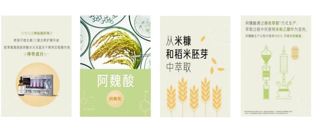 除了這些直接手段,企業(yè)也在用各種方式降低碳排放。目前,歐萊雅已有兩家中國工廠實(shí)現(xiàn)0碳排放,預(yù)計至2025年,歐萊雅所有工廠將100%實(shí)現(xiàn)碳中和。歐萊雅的許多原材料都來自大自然。廣受關(guān)注的歐萊雅注白瓶,以阿魏酸為核心美白成分。在強(qiáng)抗氧成分——阿魏酸的提取過程中,采用了綠色萃取方式。這種方式減少了能源消耗,使用了對環(huán)境影響最小的溶劑。