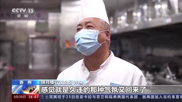 得月樓行政總廚 許翔:重新做松鼠桂魚的話,感覺那種久違的氣氛又回來了。19歲進(jìn)得月樓,一直做到現(xiàn)在。今年是60歲,從業(yè)40多年吧,從來沒有碰到過像疫情這樣的事情,停業(yè)三個(gè)月。