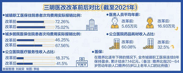 此外,通過實行醫(yī)??傤~付費、結余留用激勵機制,緊密型縣域醫(yī)共體將更多工作轉向健康管理,試點地區(qū)參保居民住院率從2019年的24%下降至2020年的15%,醫(yī)保實際報銷比提高到61.2%,好于全國平均水平,群眾醫(yī)療費用負擔減輕。