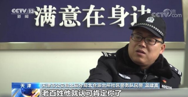 天津市公安局北辰分局北倉(cāng)派出所社區(qū)警務(wù)隊(duì)民警 溫建富:因?yàn)樘焯煜氯?,天天能?jiàn)到我,有一天能看見(jiàn)我三四趟。第一時(shí)間能夠找到我,有什么困難,有什么求助,有什么糾紛,能第一時(shí)間為他們解決。解決糾紛多,你在老百姓心目中地位就提高了,老百姓就認(rèn)可、肯定你,所以他有事兒他都找你。在我心目當(dāng)中,老百姓事無(wú)小事兒,把老百姓的事當(dāng)成自己的事兒解決,當(dāng)成自己的事兒辦,什么問(wèn)題都能夠解決。
