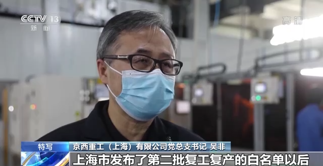 京西重工(上海)有限公司黨總支書記 吳非:上海市發(fā)布了第二批復(fù)工復(fù)產(chǎn)的白名單以后,政府及時(shí)地跟公司進(jìn)行對(duì)接,整個(gè)上海對(duì)企業(yè)的復(fù)工復(fù)產(chǎn)可以說是上報(bào)一批就及時(shí)地批復(fù)了一批。
