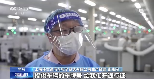 上海偉世通汽車電子系統(tǒng)有限公司生產(chǎn)經(jīng)理 張兆閃:物流通道方面說真的政府也已經(jīng)給了我們很多的支持,比如說提供車輛的車牌號(hào)和給我們開通行證等。