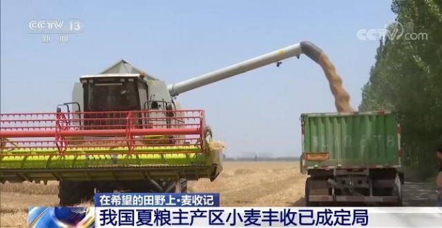 央視網(wǎng)消息:夏糧是全年糧食生產(chǎn)第一季,產(chǎn)量占全年糧食產(chǎn)量五分之一多,其中90%以上都是小麥。農(nóng)業(yè)農(nóng)村部22日發(fā)布的小麥機(jī)收進(jìn)度顯示,夏糧主產(chǎn)區(qū)小麥大規(guī)模機(jī)收基本結(jié)束,豐收已成定局。