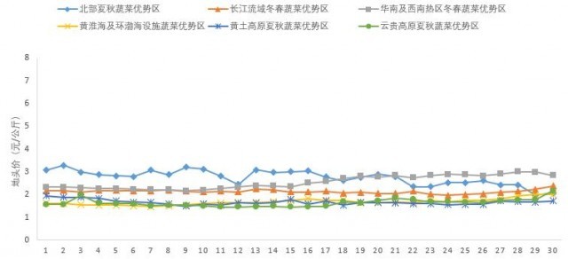 圖2 2022年6月全國蔬菜優(yōu)勢區(qū)地頭價走勢圖