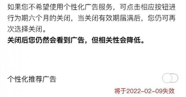 警惕用戶這種拒絕權(quán)流于形式,需要平臺自覺維護(hù)。記者通過對比發(fā)現(xiàn),在其他平臺個性化廣告設(shè)置端口,明顯提示“你可以開啟或關(guān)閉服務(wù),或管理廣告興趣標(biāo)簽。廣告總數(shù)不會因此變化。”也就意味著將選擇或拒絕權(quán)交到了用戶手中,雖然關(guān)閉后還是會接收到隨機(jī)推送的廣告,但這些廣告并非是針對用戶個人興趣點(diǎn)“計(jì)算”出來的。