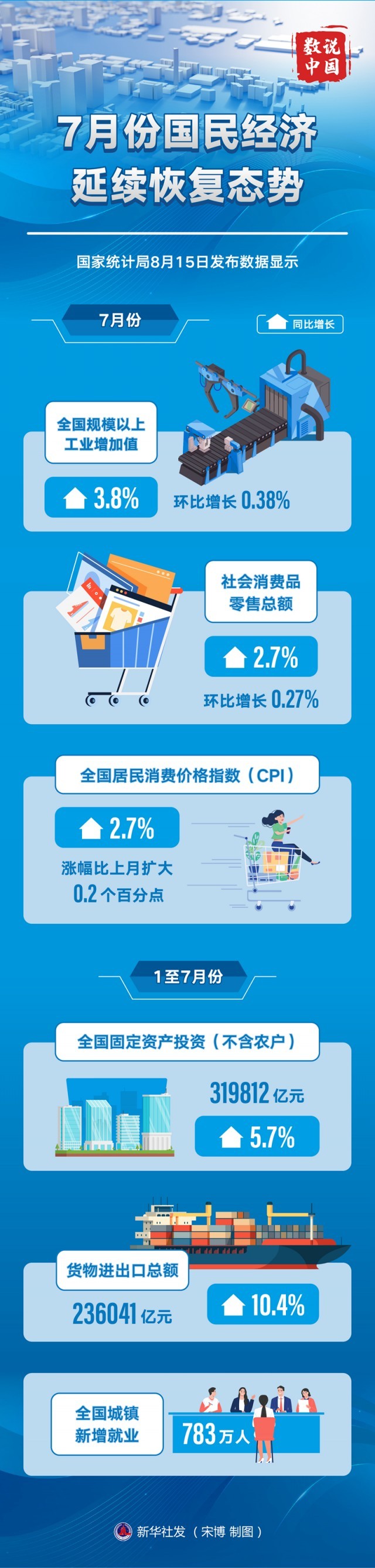 新華社北京8月15日電 題:抓住經(jīng)濟(jì)恢復(fù)關(guān)鍵期,鞏固經(jīng)濟(jì)恢復(fù)基礎(chǔ)——聚焦前7個月國民經(jīng)濟(jì)運(yùn)行數(shù)據(jù)