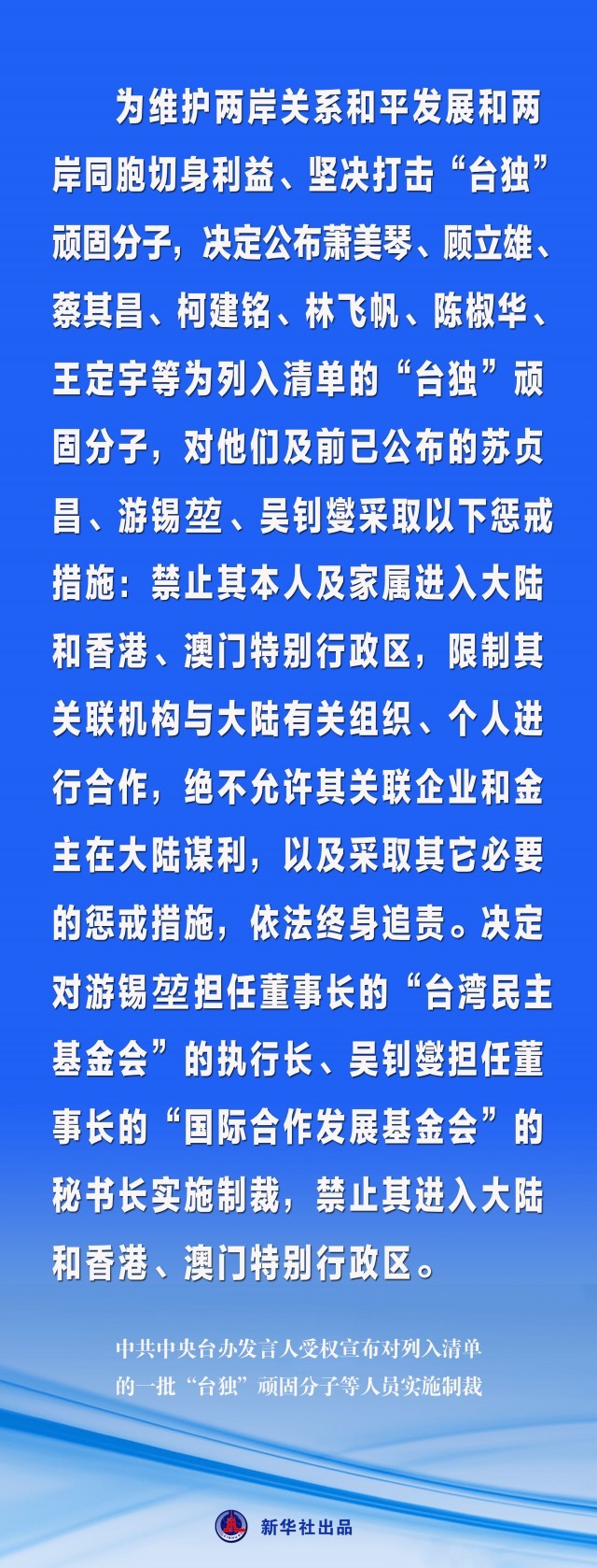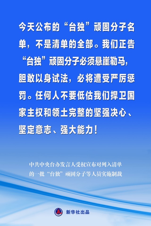 海報(bào)丨中共中央臺辦發(fā)言人受權(quán)宣布對列入清單的一批“臺獨(dú)”頑固分子等人員實(shí)施制裁