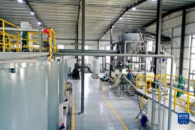 這是山西山予鈣業(yè)有限責(zé)任公司納米碳酸鈣生產(chǎn)車間(2022年4月25日攝)。新華社發(fā)