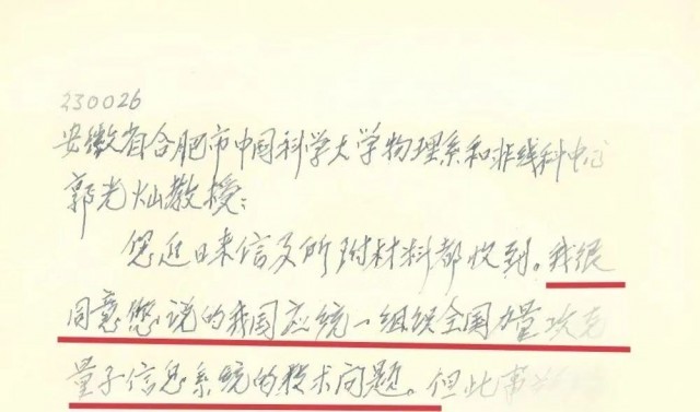 信中寫道:“我很同意您說(shuō)的我國(guó)應(yīng)統(tǒng)一組織全國(guó)力量攻克量子信息系統(tǒng)的技術(shù)問(wèn)題。”“此事關(guān)系到國(guó)家大事”,還就如何“組織全國(guó)力量”表達(dá)了看法。