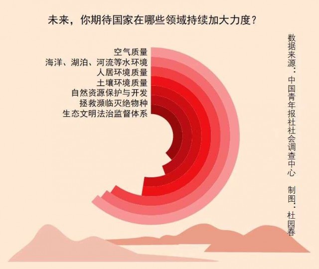 上周,中國(guó)青年報(bào)社社會(huì)調(diào)查中心聯(lián)合問卷網(wǎng)(wenjuan.com),對(duì)2005名受訪者進(jìn)行的一項(xiàng)調(diào)查顯示,受訪者期待未來在空氣質(zhì)量、水環(huán)境質(zhì)量、人居環(huán)境質(zhì)量等領(lǐng)域持續(xù)加大治理力度。94.9%的受訪者相信我國(guó)生態(tài)環(huán)境質(zhì)量會(huì)持續(xù)向好。