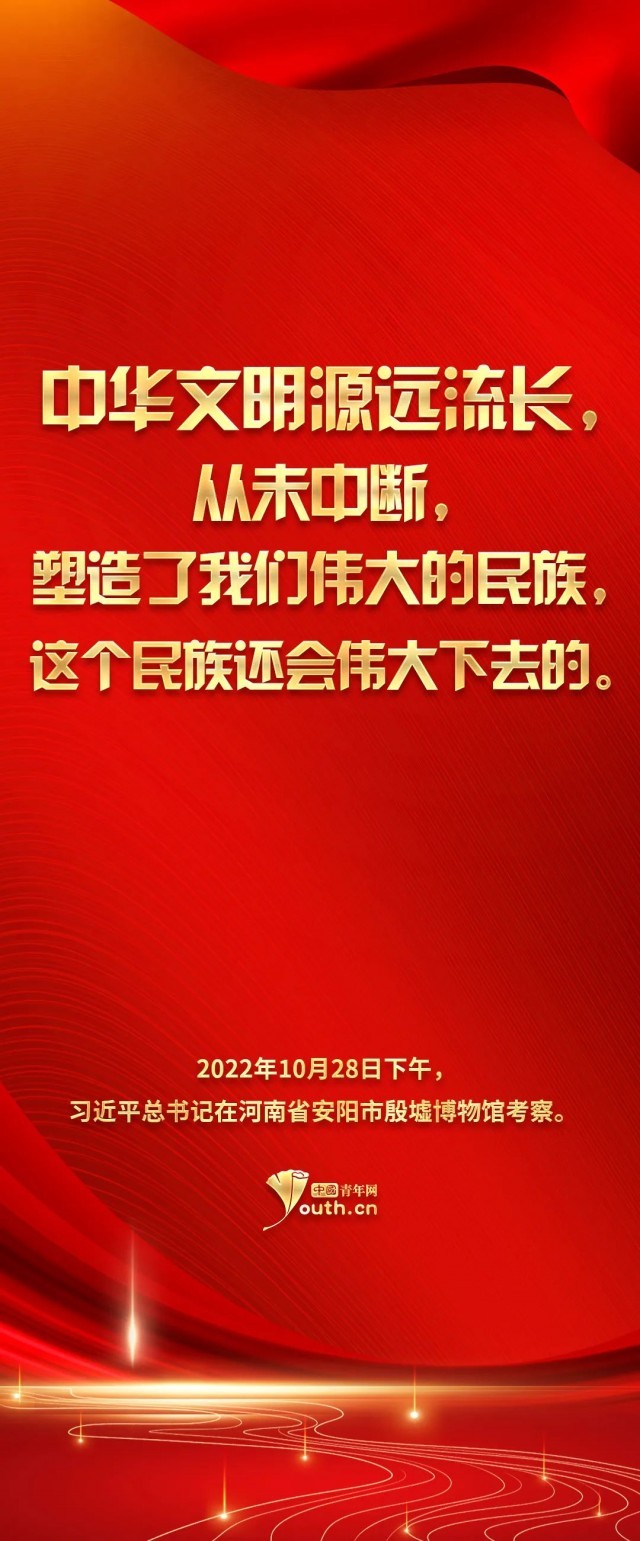 2022年10月28日,習(xí)近平總書記在黨的二十大勝利閉幕后就來到他向往已久的殷墟考察,并發(fā)表了重要講話?!耙笮娉鐾恋募坠俏臑槲覀儽4?000年前的文字,把中國(guó)信史向上推進(jìn)了約1000年。”習(xí)總書記指出,中國(guó)的漢文字非常了不起,中華民族的形成和發(fā)展離不開漢文字的維系。