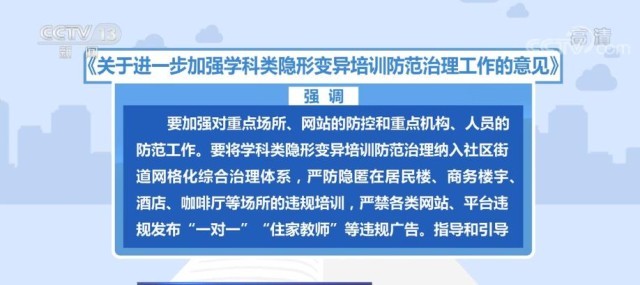 央視網(wǎng)消息:近日,教育部辦公廳等十二部門聯(lián)合印發(fā)了《關于進一步加強學科類隱形變異培訓防范治理工作的意見》?!兑庖姟芬?,到2024年6月,全面清除隱形變異培訓。