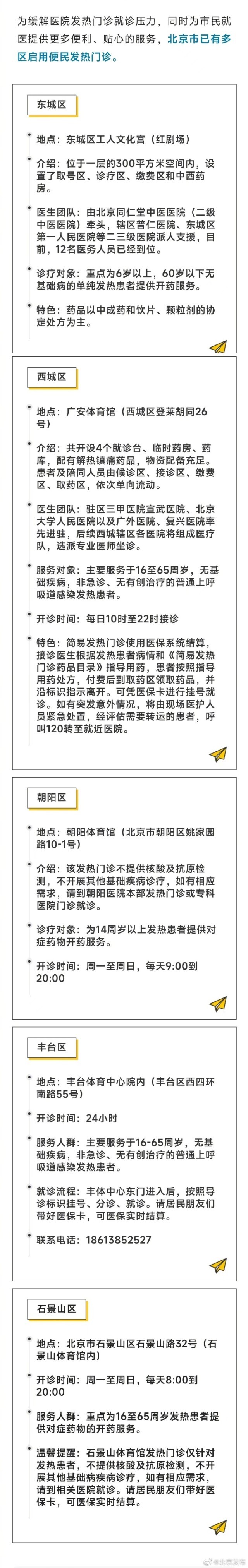 央視網(wǎng)消息:據(jù)@北京發(fā)布 微博,為緩解醫(yī)院發(fā)熱門診就診壓力,同時為市民就醫(yī)提供更多便利、貼心的服務,北京市已有多區(qū)啟用便民發(fā)熱門診。