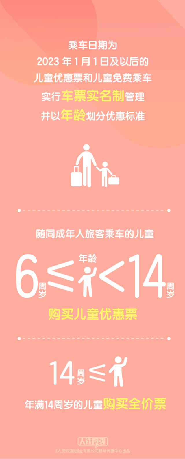 《客規(guī)》明確,乘車日期為2023年1月1日及以后的兒童優(yōu)惠票和兒童免費(fèi)乘車實(shí)行車票實(shí)名制管理并以年齡劃分優(yōu)惠標(biāo)準(zhǔn)。