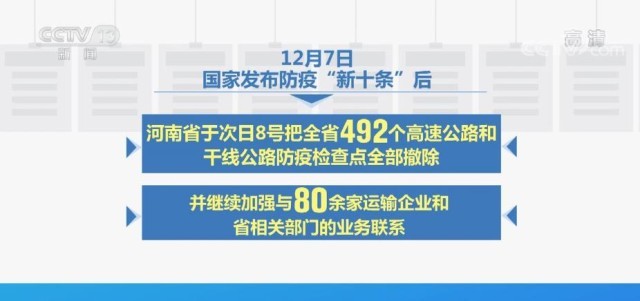 據(jù)了解,12月7日,國家發(fā)布防疫“新十條”后,河南省于次日把全省492個高速公路和干線公路防疫檢查點全部撤除,并繼續(xù)加強與80余家運輸企業(yè)和省相關(guān)部門的業(yè)務聯(lián)系,充分發(fā)揮“12328服務監(jiān)督熱線+三級調(diào)度”機制作用,每日收集運輸受阻問題,以便及時解決問題。