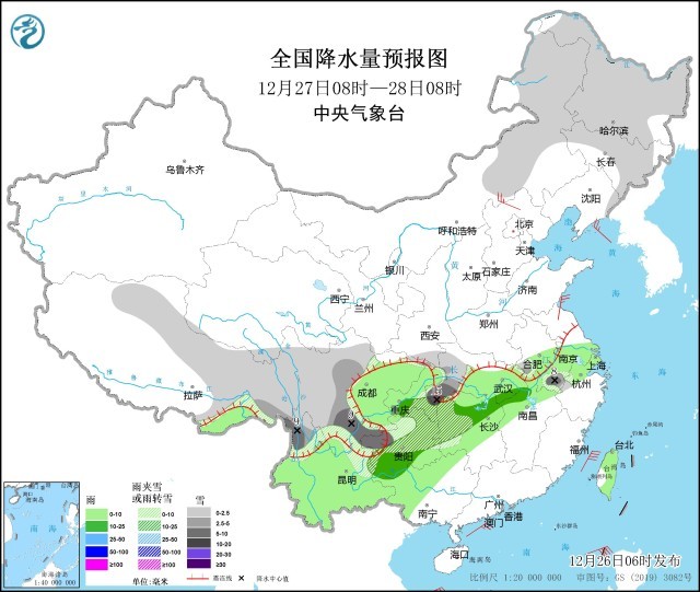 央視網(wǎng)消息:12月25日,陜西中南部、山西南部、河南、山東西部、湖北西部等地出現(xiàn)降雪或雨夾雪,累計(jì)降水量1~5毫米,陜西中部局地6~10毫米。