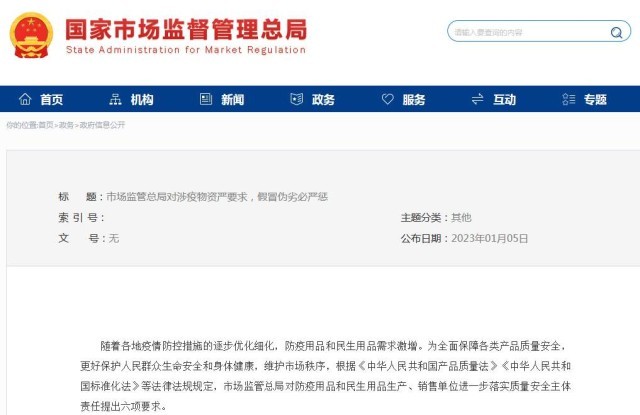 市場監(jiān)管總局:涉疫物資假冒偽劣必嚴(yán)懲