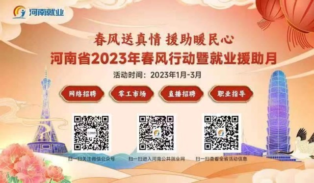 河南省通過“1+6省際勞務協(xié)作聯(lián)盟”平臺鋪路、省級專場活動高位引領、“四進”就業(yè)援助服務保障、線下線上同步直播送崗、零工市場全省聯(lián)動快招等形式,把就業(yè)春風送到群眾身邊?;顒悠陂g,計劃組織1.6萬家企業(yè),舉辦2500場招聘活動,發(fā)布100萬崗位。