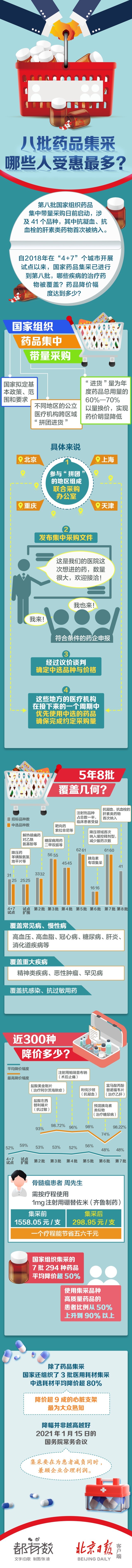 自2018年在“4+7”個城市開展試點(diǎn)以來,國家藥品集采已進(jìn)行到第八批,哪些疾病的治療藥物被覆蓋?藥品降價幅度達(dá)到多少?