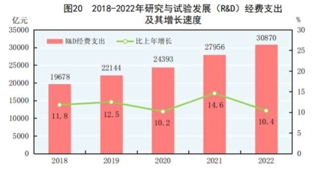 中國網(wǎng)財(cái)經(jīng)2月28日訊 國家統(tǒng)計(jì)局28日發(fā)布的2022年國民經(jīng)濟(jì)和社會(huì)發(fā)展統(tǒng)計(jì)公報(bào)顯示,2022年,全年研究與試驗(yàn)發(fā)展(R&D)經(jīng)費(fèi)支出30870億元,比上年增長10.4%,與國內(nèi)生產(chǎn)總值之比為2.55%,其中基礎(chǔ)研究經(jīng)費(fèi)1951億元。國家自然科學(xué)基金共資助5.19萬個(gè)項(xiàng)目。截至年末,正在運(yùn)行的國家重點(diǎn)實(shí)驗(yàn)室533個(gè),納入新序列管理的國家工程研究中心191個(gè),國家企業(yè)技術(shù)中心1601家,大眾創(chuàng)業(yè)萬眾創(chuàng)新示范基地212家。國家科技成果轉(zhuǎn)化引導(dǎo)基金累計(jì)設(shè)立36支子基金,資金總規(guī)模624億元。國家級科技企業(yè)孵化器1425家,國家備案眾創(chuàng)空間2441家。