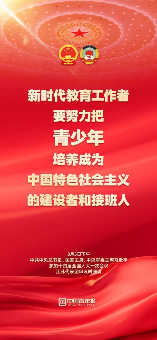 3月5日下午,習(xí)近平總書記在參加江蘇代表團(tuán)審議時(shí)指出,新時(shí)代教育工作者要努力把青少年培養(yǎng)成為中國特色社會主義的建設(shè)者和接班人;要真正把青少年培養(yǎng)成為擁有“四個(gè)自信”的孩子。青少年是國家的未來,讓我們共同奮斗,為孩子們撐起成長的藍(lán)天!