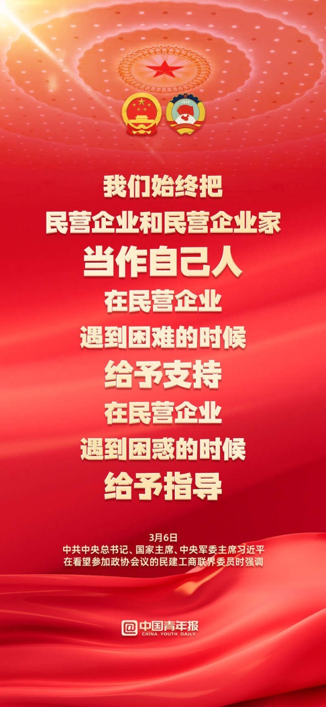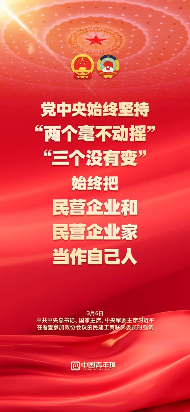 “始終把民營(yíng)企業(yè)和民營(yíng)企業(yè)家當(dāng)作自己人”;“無(wú)論是國(guó)有企業(yè)還是民營(yíng)企業(yè),都是促進(jìn)共同富裕的重要力量,都必須擔(dān)負(fù)促進(jìn)共同富裕的社會(huì)責(zé)任。”3月6日下午,習(xí)近平總書記在看望參加政協(xié)會(huì)議的民建工商聯(lián)界委員時(shí)強(qiáng)調(diào),要正確引導(dǎo)民營(yíng)經(jīng)濟(jì)健康發(fā)展高質(zhì)量發(fā)展。關(guān)于民營(yíng)企業(yè)和民營(yíng)企業(yè)家,總書記作出哪些重要論述,轉(zhuǎn)存金句,共同學(xué)習(xí)