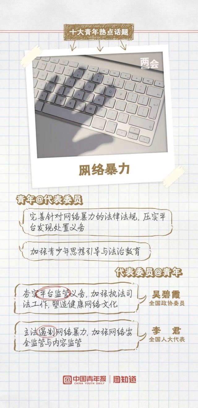 如何實(shí)現(xiàn)高質(zhì)量就業(yè)、如何破解“不敢生”、如何遏制網(wǎng)絡(luò)暴力……兩會(huì)前,團(tuán)中央權(quán)益部、中國(guó)青年報(bào)社等機(jī)構(gòu)聯(lián)合梳理了青年關(guān)心的十大熱點(diǎn)話題。這些話題也被代表委員關(guān)注,他們提出很多真知灼見(jiàn)。青年關(guān)心,代表委員關(guān)注,一起來(lái)看看代表委員怎么說(shuō)。