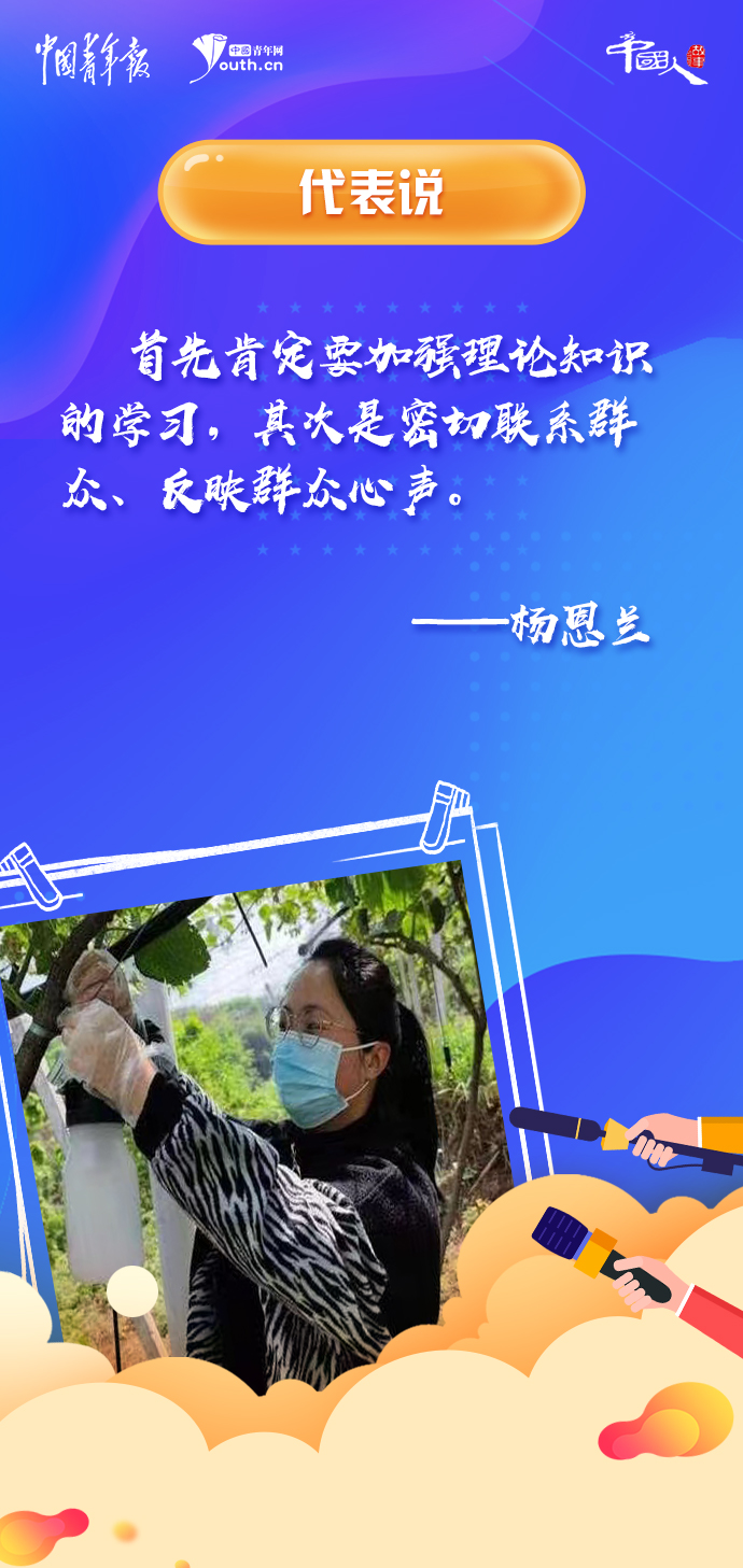 今年,楊恩蘭當(dāng)選為第十四屆全國(guó)人民代表大會(huì)代表。這讓她有些“惶恐”,感到身上的擔(dān)子又重了幾分。