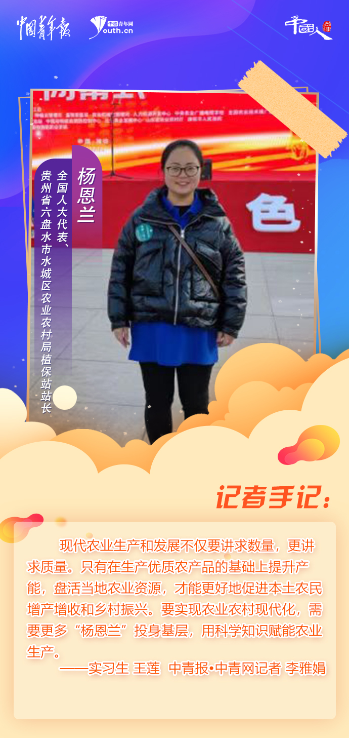 采訪楊恩蘭時(shí),正值六盤水市兩會(huì)召開(kāi),楊恩蘭忙得不可開(kāi)交,白天開(kāi)完代表大會(huì)后,晚上又馬不停蹄地回到酒店接受采訪。從學(xué)業(yè)聊到工作,從愛(ài)情聊到生活,這名90后出身農(nóng)村,到廣州接受高等教育,又放棄在廣州穩(wěn)定的工作,回到成長(zhǎng)的地方。她常說(shuō),自己研究生階段所學(xué)專業(yè)更適合在基層做農(nóng)業(yè)推廣,只有深入到田間、與農(nóng)戶交流,才能最大程度地發(fā)揮所長(zhǎng)。