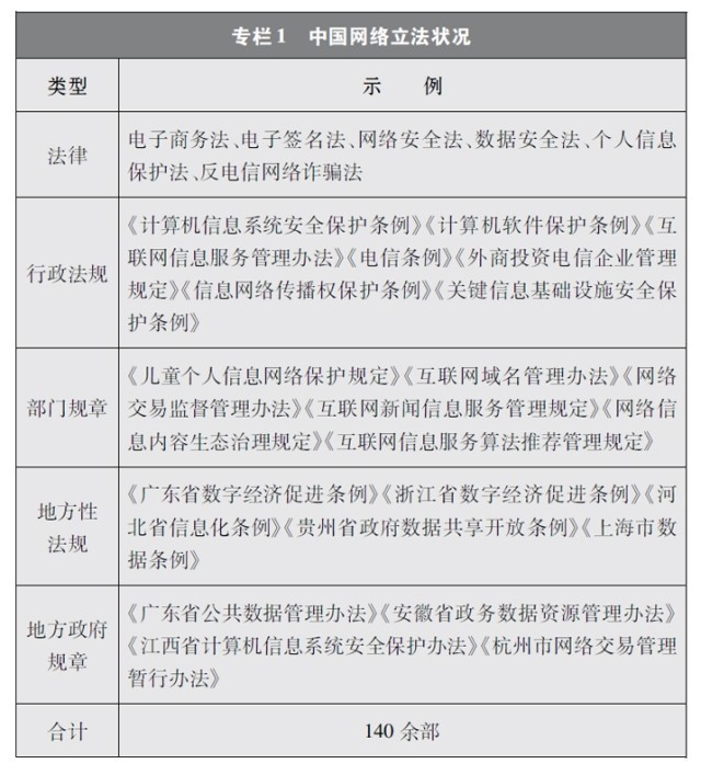 中國網(wǎng)絡(luò)立法隨著互聯(lián)網(wǎng)發(fā)展經(jīng)歷了從無到有、從少到多、由點(diǎn)到面、由面到體的發(fā)展過程。第一階段從1994年至1999年,是接入互聯(lián)網(wǎng)階段。上網(wǎng)用戶和設(shè)備數(shù)量穩(wěn)步增加。這一階段網(wǎng)絡(luò)立法主要聚焦于網(wǎng)絡(luò)基礎(chǔ)設(shè)施安全,即計算機(jī)系統(tǒng)安全和聯(lián)網(wǎng)安全。第二階段從2000年至2011年,是PC互聯(lián)網(wǎng)階段。隨著計算機(jī)數(shù)量逐步增加、上網(wǎng)資費(fèi)逐步降低,用戶上網(wǎng)日益普遍,網(wǎng)絡(luò)信息服務(wù)迅猛發(fā)展。這一階段網(wǎng)絡(luò)立法轉(zhuǎn)向側(cè)重網(wǎng)絡(luò)服務(wù)管理和內(nèi)容管理。第三階段從2012年至今,是移動互聯(lián)網(wǎng)階段。這一階段網(wǎng)絡(luò)立法逐步趨向全面涵蓋網(wǎng)絡(luò)信息服務(wù)、信息化發(fā)展、網(wǎng)絡(luò)安全保護(hù)等在內(nèi)的網(wǎng)絡(luò)綜合治理。在這一進(jìn)程中,中國制定出臺網(wǎng)絡(luò)領(lǐng)域立法140余部,基本形成了以憲法為根本,以法律、行政法規(guī)、部門規(guī)章和地方性法規(guī)、地方政府規(guī)章為依托,以傳統(tǒng)立法為基礎(chǔ),以網(wǎng)絡(luò)內(nèi)容建設(shè)與管理、網(wǎng)絡(luò)安全和信息化等網(wǎng)絡(luò)專門立法為主干的網(wǎng)絡(luò)法律體系,為網(wǎng)絡(luò)強(qiáng)國建設(shè)提供了堅實(shí)的制度保障。
