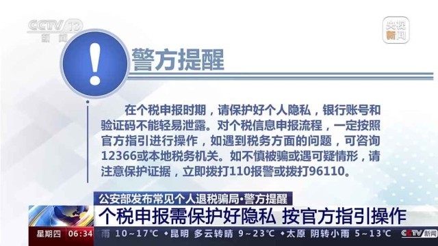 警方提醒:個稅申報需保護(hù)好隱私,按官方指引操作