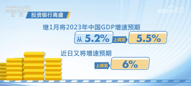 央視網(wǎng)消息:今年以來(lái),國(guó)際機(jī)構(gòu)紛紛上調(diào)中國(guó)經(jīng)濟(jì)增長(zhǎng)預(yù)期。投資銀行高盛繼1月將2023年中國(guó)GDP增速預(yù)期從5.2%上調(diào)至5.5%后,近日又將增速預(yù)期上調(diào)至6%。據(jù)國(guó)際貨幣基金組織測(cè)算,中國(guó)經(jīng)濟(jì)的強(qiáng)勁反彈意味著將在今年貢獻(xiàn)全球經(jīng)濟(jì)增長(zhǎng)的約三分之一,將為世界經(jīng)濟(jì)帶來(lái)強(qiáng)勁的拉動(dòng)作用。