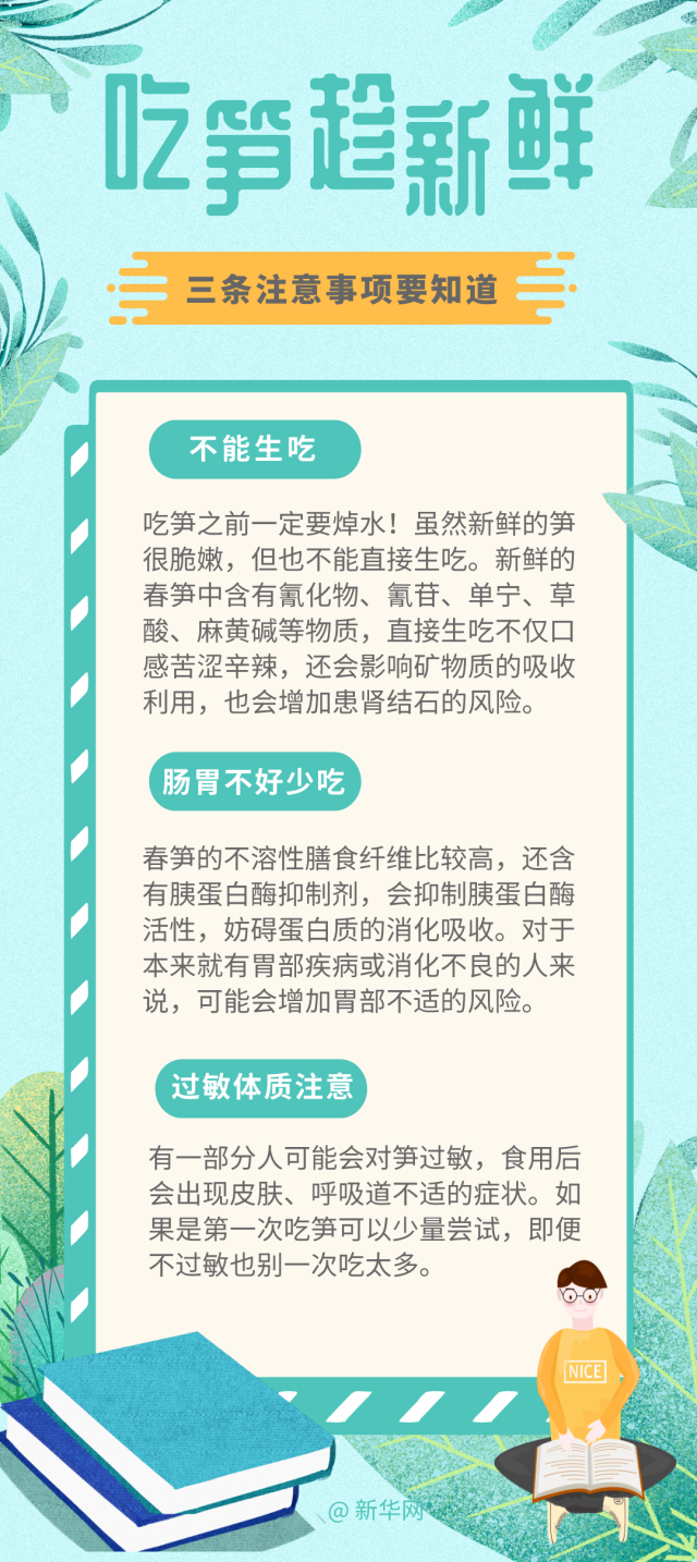 春季吃筍正當(dāng)時(shí),但春筍吃不對(duì)也會(huì)帶來(lái)健康風(fēng)險(xiǎn)。近日“男子貪吃春筍后嘔血又暈厥”的新聞就給人們提了個(gè)醒,那吃筍有哪些注意事項(xiàng)呢?