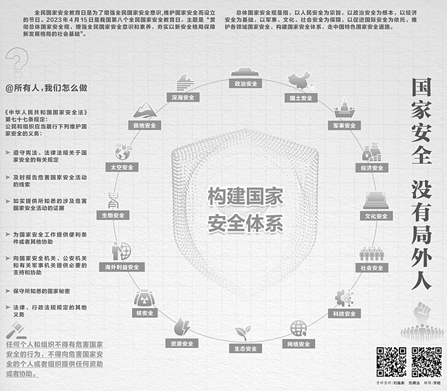 全民國(guó)家安全教育日是為了增強(qiáng)全民國(guó)家安全意識(shí),維護(hù)國(guó)家安全而設(shè)立的節(jié)日。2023年4月15日是我國(guó)第八個(gè)全民國(guó)家安全教育日,主題是“貫徹總體國(guó)家安全觀,增強(qiáng)全民國(guó)家安全意識(shí)和素養(yǎng),夯實(shí)以新安全格局保障新發(fā)展格局的社會(huì)基礎(chǔ)”。
