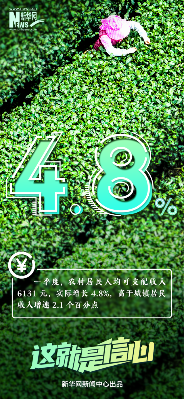 今年一季度,農(nóng)村居民人均可支配收入6131元,實際增長4.8%;一季度全國城鎮(zhèn)新增就業(yè)297萬人,同比增加4%;一季度豬肉產(chǎn)量同比增長1.9%,畜禽和水產(chǎn)品全面增產(chǎn),蔬菜和水果供應(yīng)充足......剛剛過去的一季度,多項民生紅利集中釋放,跟隨這組數(shù)據(jù)一起感知。