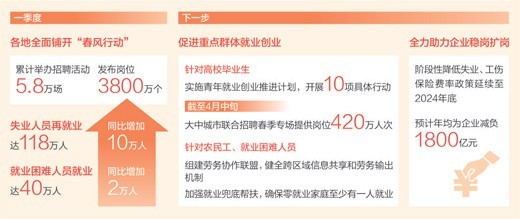 保重點(diǎn),促進(jìn)重點(diǎn)群體就業(yè)創(chuàng)業(yè)。針對高校畢業(yè)生,將實(shí)施促進(jìn)高校畢業(yè)生等青年就業(yè)創(chuàng)業(yè)推進(jìn)計(jì)劃,開展10項(xiàng)具體行動,著力拓展就業(yè)渠道、做實(shí)做細(xì)就業(yè)服務(wù)、強(qiáng)化困難兜底保障。截至4月中旬,大中城市聯(lián)合招聘春季專場提供崗位420萬人次。針對農(nóng)民工、就業(yè)困難人員,將組建勞務(wù)協(xié)作聯(lián)盟,健全跨區(qū)域信息共享和勞務(wù)輸出機(jī)制。加強(qiáng)困難群體就業(yè)兜底幫扶,確保零就業(yè)家庭至少有一人就業(yè)。