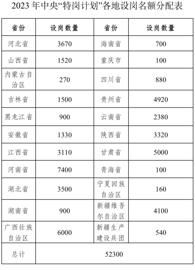 中國青年報客戶端北京4月25日電(中青報·中青網記者 樊未晨)記者今天從教育部獲悉,教育部辦公廳、財政部辦公廳近日聯(lián)合印發(fā)《關于做好2023年農村義務教育階段學校教師特設崗位計劃實施工作的通知》,全國計劃招聘特崗教師52300名。