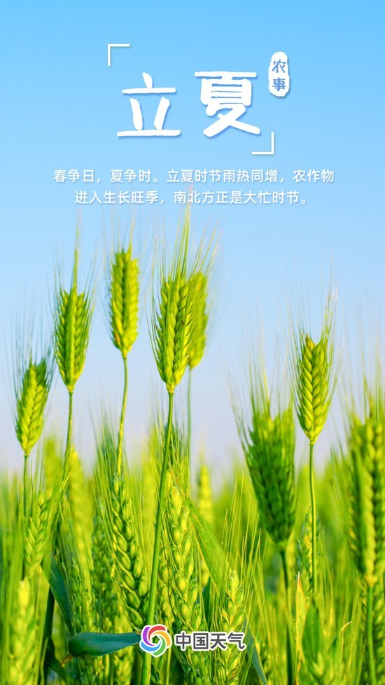 如果說春是生的季節(jié),那么夏就是長的季節(jié)?!稓v書》曰:“斗指東南,維為立夏,萬物至此皆長大,故名立夏也。”立夏,是標示萬物進入旺季生長的一個重要節(jié)氣。此時,日照增加、氣溫漸升、雷雨增多,農(nóng)作物進入了茁壯成長階段。春播作物漸漸長大,夏收作物進入生長后期,冬小麥揚花灌漿,油菜接近成熟,大江南北都進入了農(nóng)事繁忙時期。