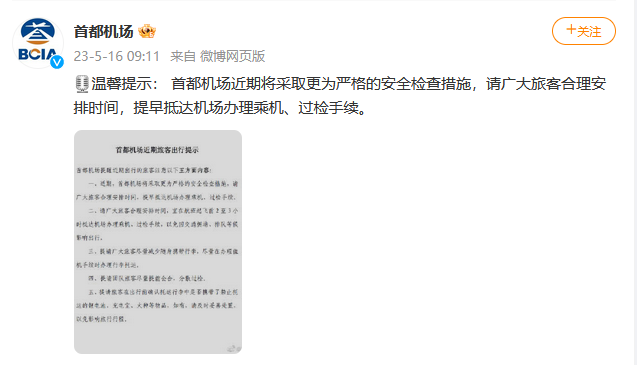 首都機(jī)場:近期將采取更為嚴(yán)格的安檢措施