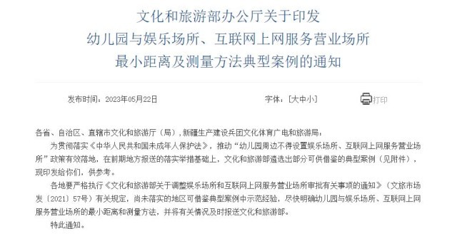 文旅部:幼兒園周邊不得設(shè)置娛樂場(chǎng)所等 各地盡快明確最小距離