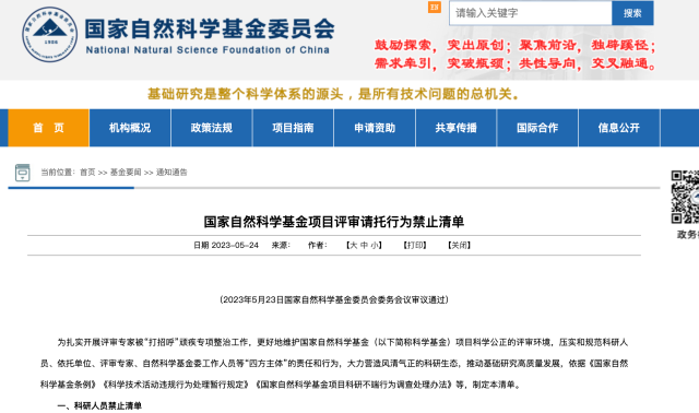 國(guó)家自然科學(xué)基金項(xiàng)目評(píng)審請(qǐng)托行為禁止清單