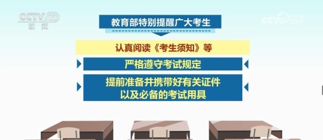教育部特別提醒廣大考生,認(rèn)真閱讀《考生須知》等,嚴(yán)格遵守考試規(guī)定,提前準(zhǔn)備并攜帶好有關(guān)證件以及必備的考試用具。