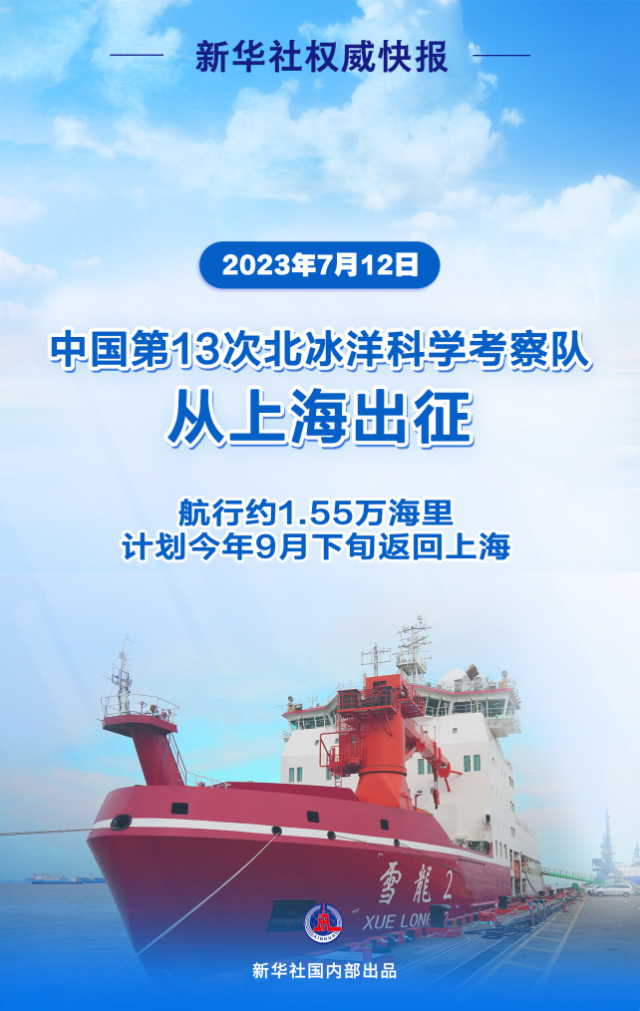 7月12日,由自然資源部組織的中國第13次北冰洋科學考察隊,乘坐“雪龍2”號極地科考破冰船,從上海出征,前往北冰洋執(zhí)行科學考察任務。本次考察預計總航程約1.55萬海里,計劃今年9月下旬返回上海。