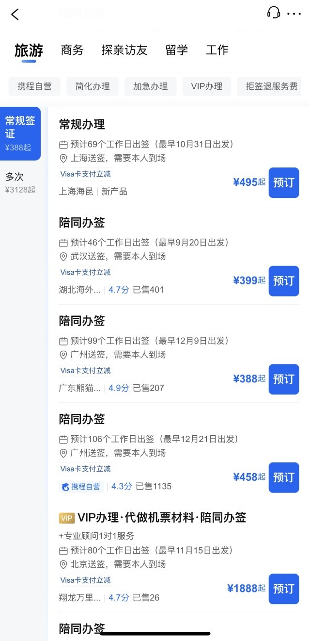 而在在線(xiàn)旅游平臺(tái),以法國(guó)簽證為例,上海地區(qū)送簽常規(guī)辦理顯示最早10月31日出發(fā)。武漢送簽顯示最早9月20日出發(fā)。而廣州送簽則顯示最早出發(fā)時(shí)間在12月。