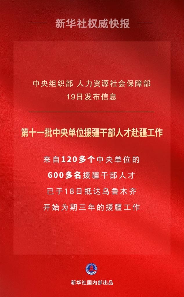 7月18日,中央組織部、人力資源社會(huì)保障部有關(guān)負(fù)責(zé)同志帶隊(duì),送第十一批中央單位援疆干部人才抵達(dá)烏魯木齊,開始了為期三年的援疆工作。