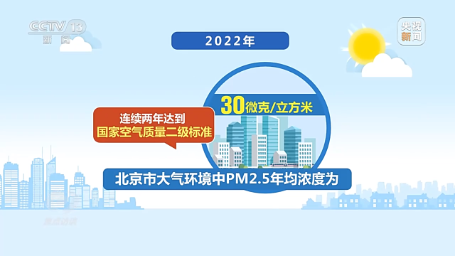 黨的十八大以來,北京市堅(jiān)決打好污染防治攻堅(jiān)戰(zhàn),大力壓減燃煤、治理機(jī)動(dòng)車排放、揮發(fā)性有機(jī)物以及各類揚(yáng)塵污染,實(shí)施“一微克”行動(dòng),治理成效顯著,藍(lán)天越來越多。監(jiān)測結(jié)果顯示,2022年,北京市大氣環(huán)境中PM2.5年均濃度為每立方米30微克,比2013年下降了66.5%,連續(xù)兩年達(dá)到國家空氣質(zhì)量二級(jí)標(biāo)準(zhǔn)。重污染天數(shù)由2013年的58天減少到2022年的3天,“北京藍(lán)”成為常態(tài)。